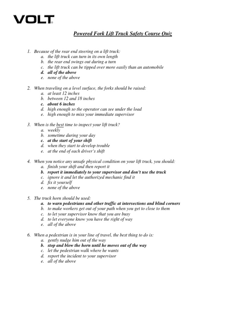 Manual Pallet Jack Safety Quiz - Ebook And Manual Free