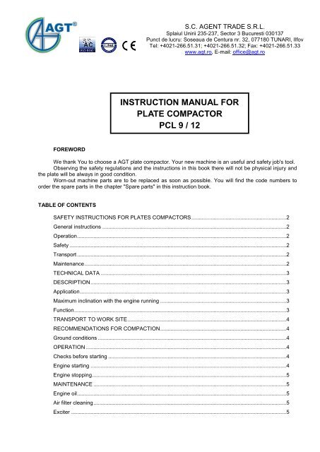 Instruction Manual For Plate Compactor Pcl 9 12 Agent Trade Srl