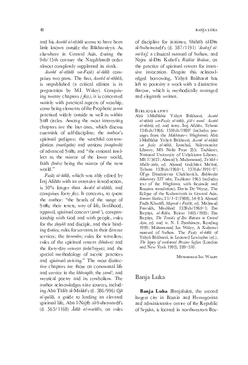 Pdf Banja Luka In Brill Encyclopedia Of Islam 3rd Edition