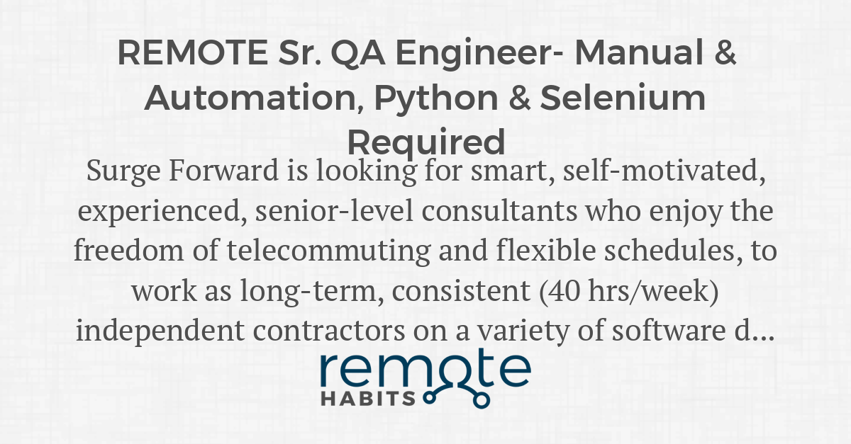 Remote Sr Qa Engineer Manual Automation Python Selenium
