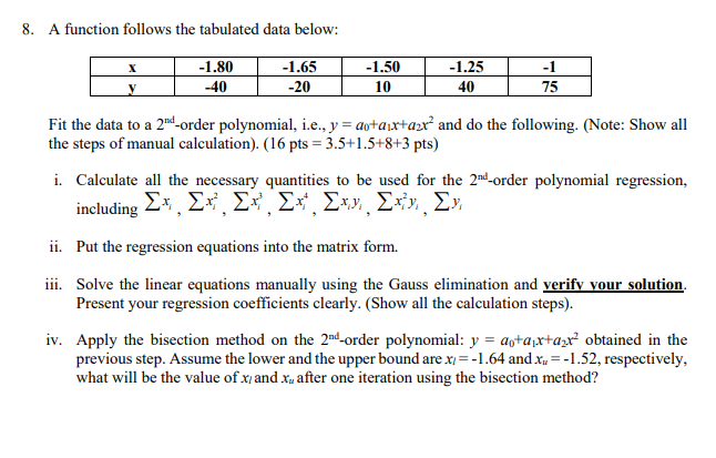Solved 8 A Function Follows The Tabulated Data Below 1
