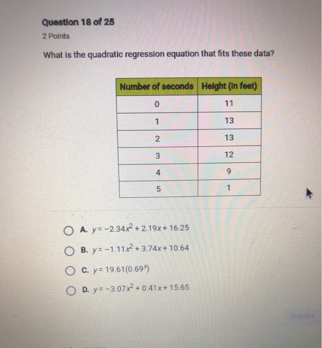 Solved Question 18 Of 25 2 Points What Is The Quadratic R