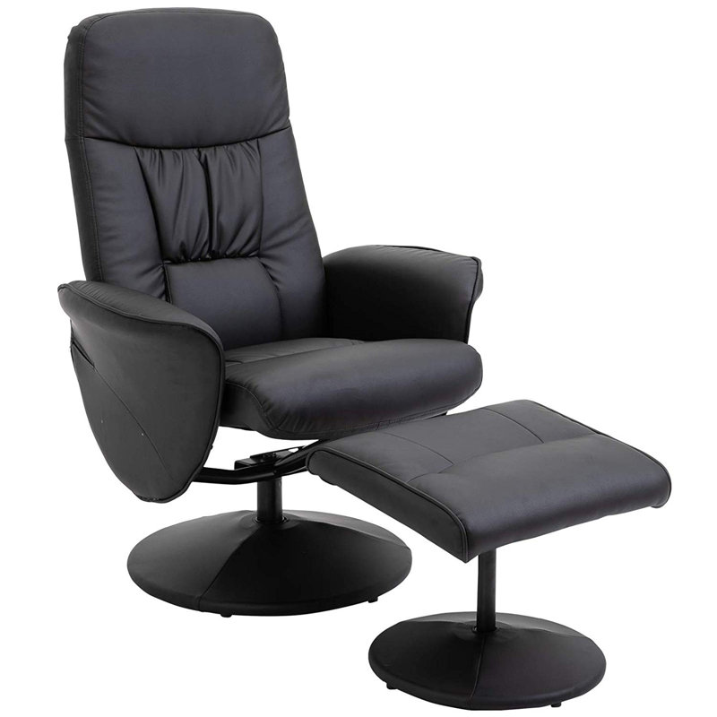 Stelvio Manual Recliner Chair With Stool In Leather Pu Black