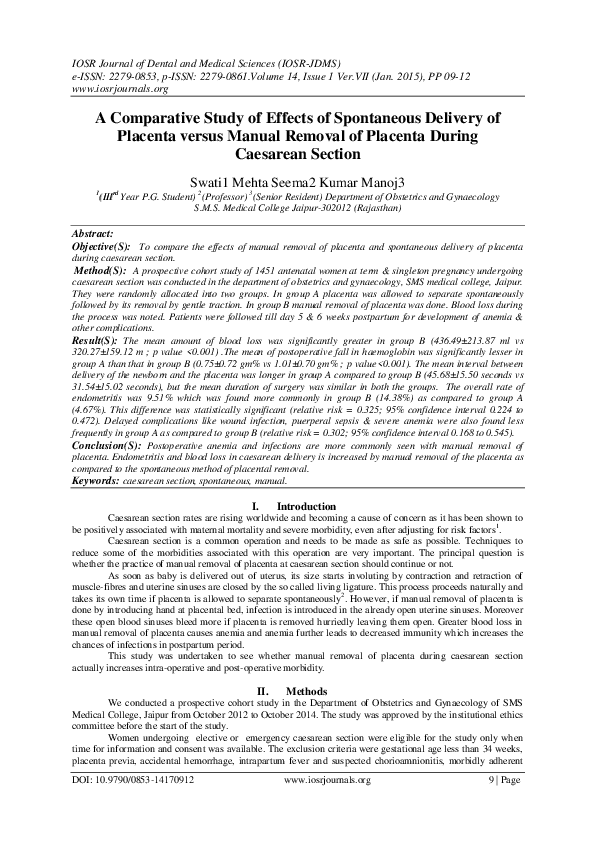 Pdf Spontaneous Delivery Or Manual Removal Of The Placenta During