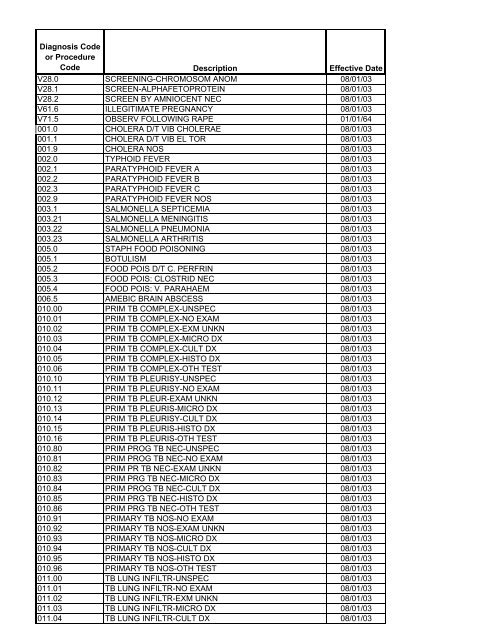 Diagnosis Code Or Procedure Code Description Effective Date V28