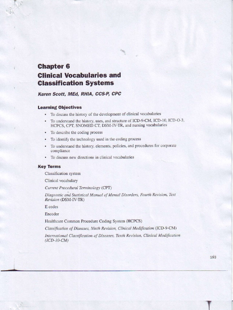 Clinical Vocabularies And Classification Diagnostic And