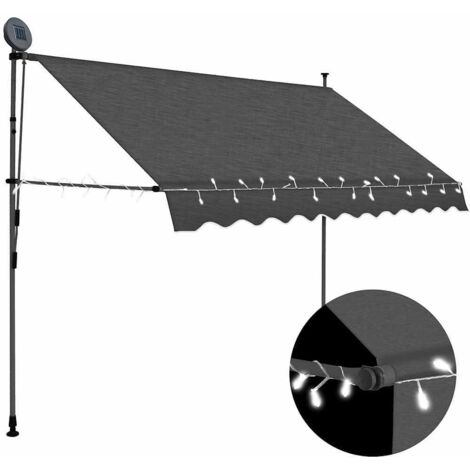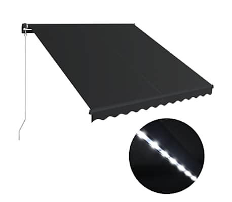 Vidaxl Manual Retractable Awning With Led 300x250 Cm Anthracite